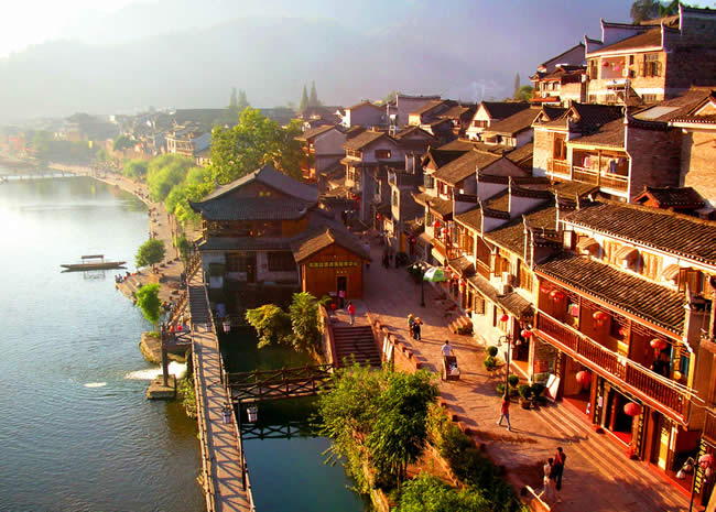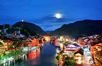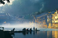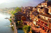 湖南鳳凰古城位于湖南省湘西自治州西南邊,是中國(guó)第101座國(guó)家歷史文化名城,是一個(gè)以苗族、土家族為主的少數(shù)民族聚集縣。它位于沱江之畔,群山環(huán)抱,曾被新西蘭著名作家路易艾黎稱贊為中國(guó)最美麗的小城。古城風(fēng)景秀麗、歷史悠久、名勝古跡甚多。城內(nèi)石板小街,古代城樓,明清古院;城外沱江蜿蜒,河水清冽,漿聲舟影,山歌互答,一派寧?kù)o安祥的小城風(fēng)光。