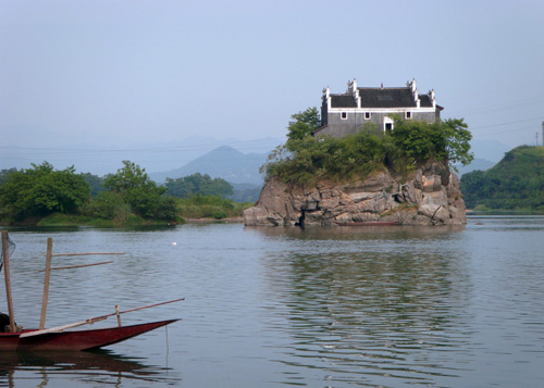 香零山為天然石磯結構,地處中流,隨瀟水水勢而展現不同的風光,勢浩蕩則如汪洋中之一小舟,水勢弱小則島亭昭然挺立。若雨后日出,煙鎖山腳,霧雨朦朧,往來舟楫,若隱若現,給人一種煙波浩渺的意境,因而有“香零煙雨”之稱,為永州八景之一。