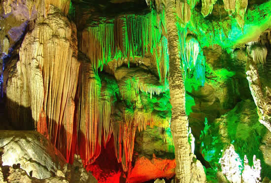 奇梁洞位于縣城北四公里處,屬典型的碳酸鹽巖洞,該洞以奇、秀、闊、幽四大特色著稱。洞長6000余米,共分五大景區(qū):即古戰(zhàn)場、畫廊、天堂、龍宮和陰陽河。洞中有山,奇梁洞圖片山中有洞,洞洞相連。它集奇巖巧石,流泉飛瀑于一洞,由千姿百態(tài)的石筍、石柱、石鐘乳構(gòu)成了一幅幅無比瑰麗的畫卷。一條小溪穿洞而過,水流平緩,燈光打在巖壁上,皺襞倒影在水中,如夢如幻。巖洞用五光十色的霓虹燈打在石筍、石幔及石花上,營造出一個流光溢彩的世界。在洞內(nèi)有一大廳,據(jù)傳是苗民糾集的地方,廳里立著一塊帶一個小孔的石頭,對著小孔“嗚嗚”地吹,整個大廳會回蕩著低沉的號角聲,當年的苗民就是用這種方式傳令的。