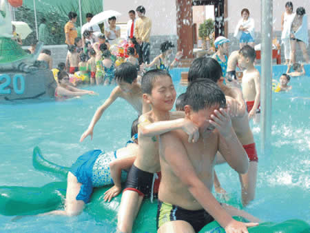 兒童游樂(lè)園 卡通噴泉、急速滑梯……這里的童話世界讓您的孩子恍若天使般幸福、快樂(lè)!銀鈴般的笑聲,充滿童稚音的歌聲,響徹云霄。美妙的孩童時(shí)光從這里開(kāi)始,五彩斑斕的人生從這里起步。水溫36-38度,專為兒童設(shè)計(jì),設(shè)有水上滑道和花樣繁多的兒童小品:蘑菇噴淋、水槍、浮漂等,讓您的孩子盡情釋放活潑快樂(lè)。