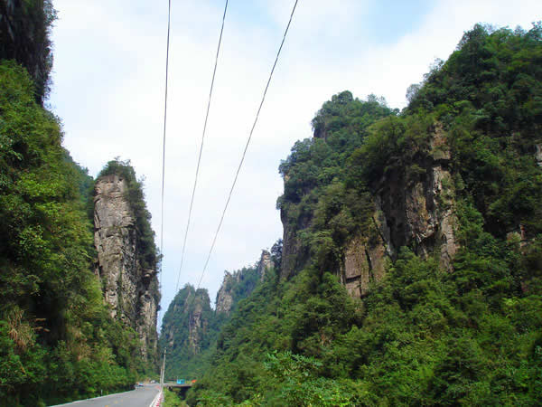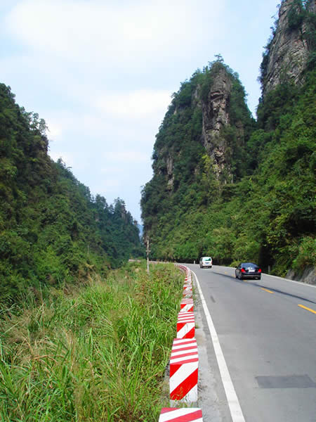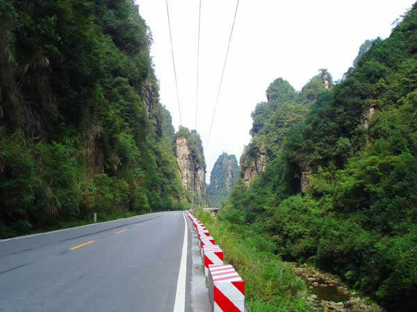 百丈峽圖片 百丈峽是武陵源風(fēng)景名勝區(qū)通往張家界市的公路貫通整個(gè)峽谷,因有堵高近百丈的石壁,直插云霄,不敢仰視,故而得名。據(jù)《慈利縣志》載,索溪峪右得百丈峽,峽長(zhǎng)三十公里……又相傳向王天子起義軍與官兵在此先后博殺一百仗,依此又名百仗峽。明代九永兵備胡桂芳,一生好游歷山川,來(lái)到百丈峽后題寫了一首七言詩(shī):“峽高百丈洞云深,要識(shí)桃源此處尋;戎旅徐行風(fēng)雪緊,誰(shuí)將興盡類山蔭。”刻于峽內(nèi)道旁石壁上。