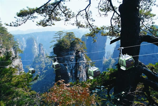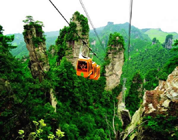 整改前的:黃石寨索道 黃石寨客運索道有限公司位于張家界森林公園,成立于1993年同,此條索道于1997年11月投入運行.是中國第一條往復式索道,張家界黃石寨索道是往復式50人(2組3個17人座)吊廂車組式索道,長1000米,小時運量948人,速度9米/秒 ,6個吊廂,每個吊廂可容納乘客17人。