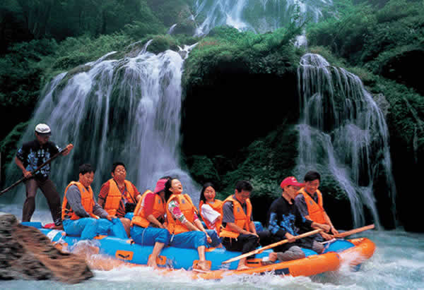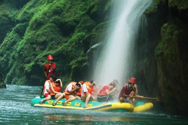 這是繼張家界國(guó)家森林公園開(kāi)放以后開(kāi)辟的又一個(gè)旅游新景區(qū),坐落在市區(qū)以西35公里處。1986年,茅巖河在全國(guó)首創(chuàng)橡皮舟漂流旅游項(xiàng)目。茅巖河全長(zhǎng)50多公里,兩岸全是懸崖峭壁,河段多險(xiǎn)灘、急流、瀑布、古木,有"百里畫(huà)廊"之美譽(yù)。乘橡皮舟順?biāo),時(shí)而急,驚心動(dòng)魄,時(shí)而緩,優(yōu)哉游哉。一路賞夾岸奇山異峰,又可領(lǐng)略水上激情,二者可兼得,其中茅巖瀑布和溫泉最為壯觀和最具特色。