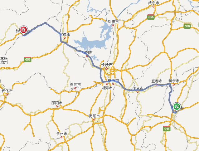 左右,沿途經過吉安——新余——宜春——萍鄉(xiāng)——株洲——長沙——益陽——常德——慈利——張家界市。