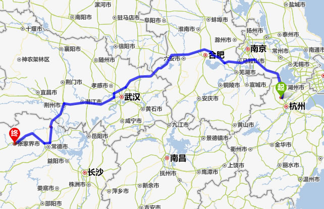 德清去張家界自駕車(chē)自助游線(xiàn)路圖全程高速):