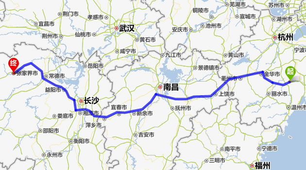 仙居去張家界自駕車(chē)自助游線路圖全程高速):
