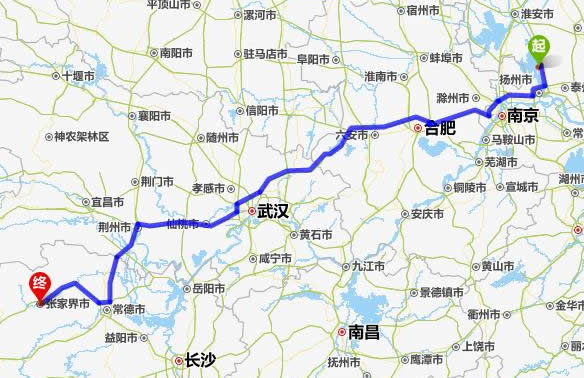 高郵去張家界自駕車自助游線路圖全程高速):