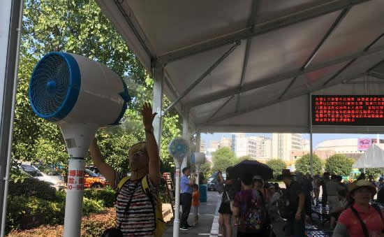 為更好的為游客防暑降溫,天門(mén)山景區(qū)特別在索道站、山門(mén)等候區(qū)增設(shè)大型遮陽(yáng)棚,作為游客等候休息區(qū),并在等候區(qū)內(nèi)安裝數(shù)十個(gè)室外冷霧降溫風(fēng)機(jī)和直飲水點(diǎn)。