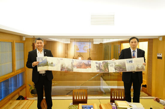 歐陽斌向蘋果旅游集團(tuán)執(zhí)行主席李益輝贈(zèng)送紀(jì)念品